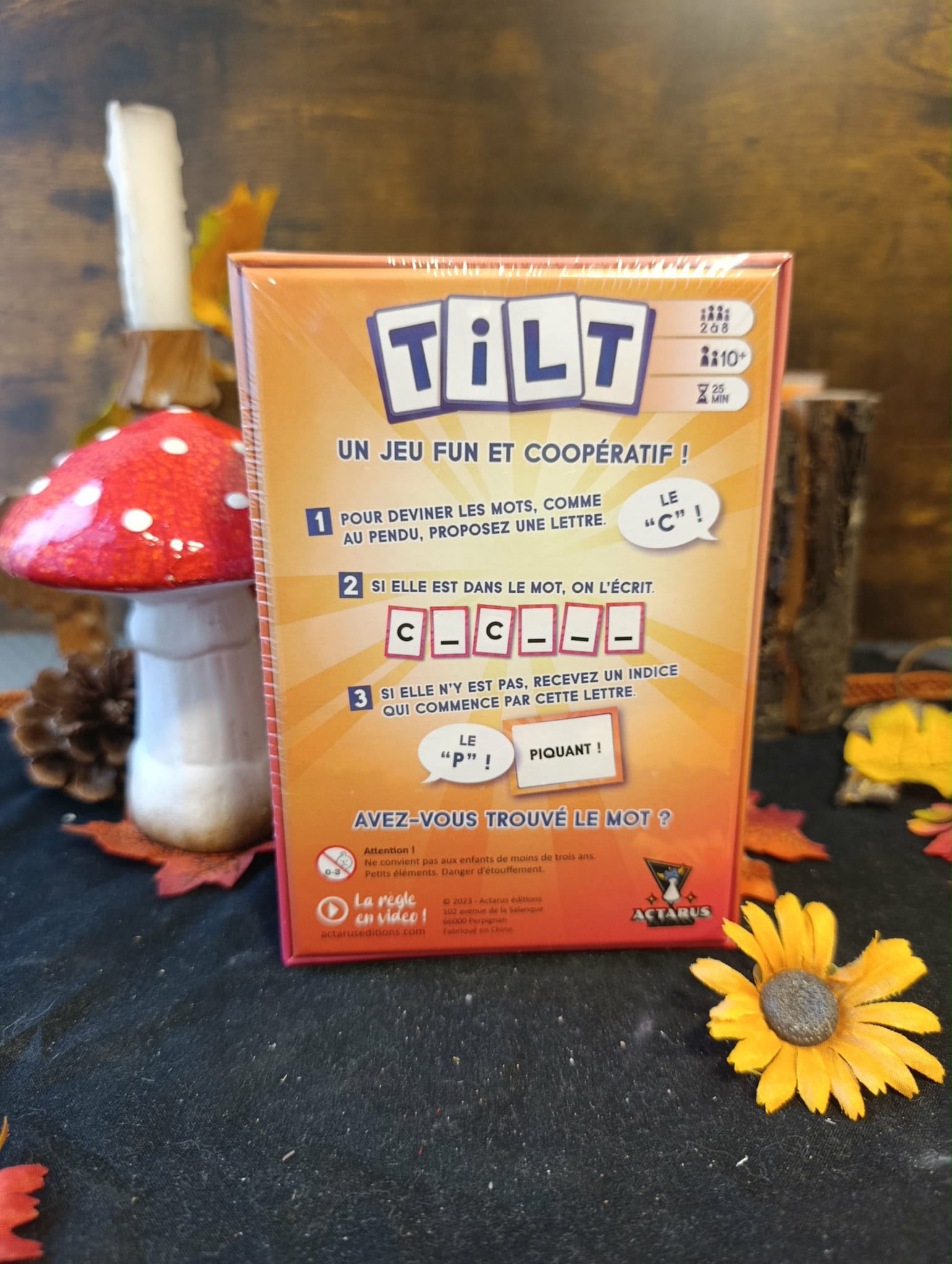 Soyez stratégiques, choisissez les bonnes lettres et indices pour remporter le défi ! Tilt combine réflexion, communication et coopération, pour des parties rapides et amusantes.