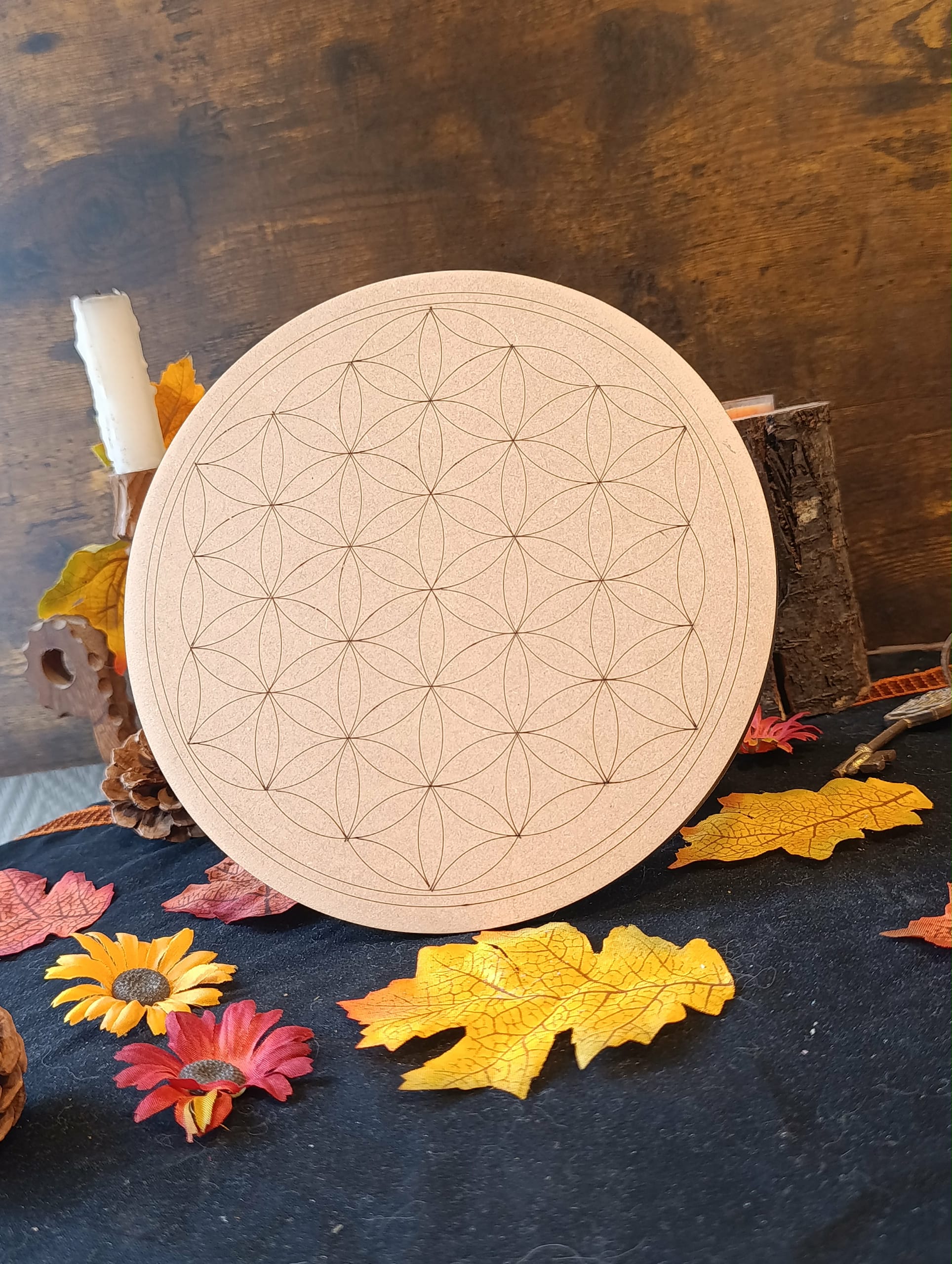 🌼 Planche Fleur de Vie 20 cm en bois – Énergie, purification et harmonisation