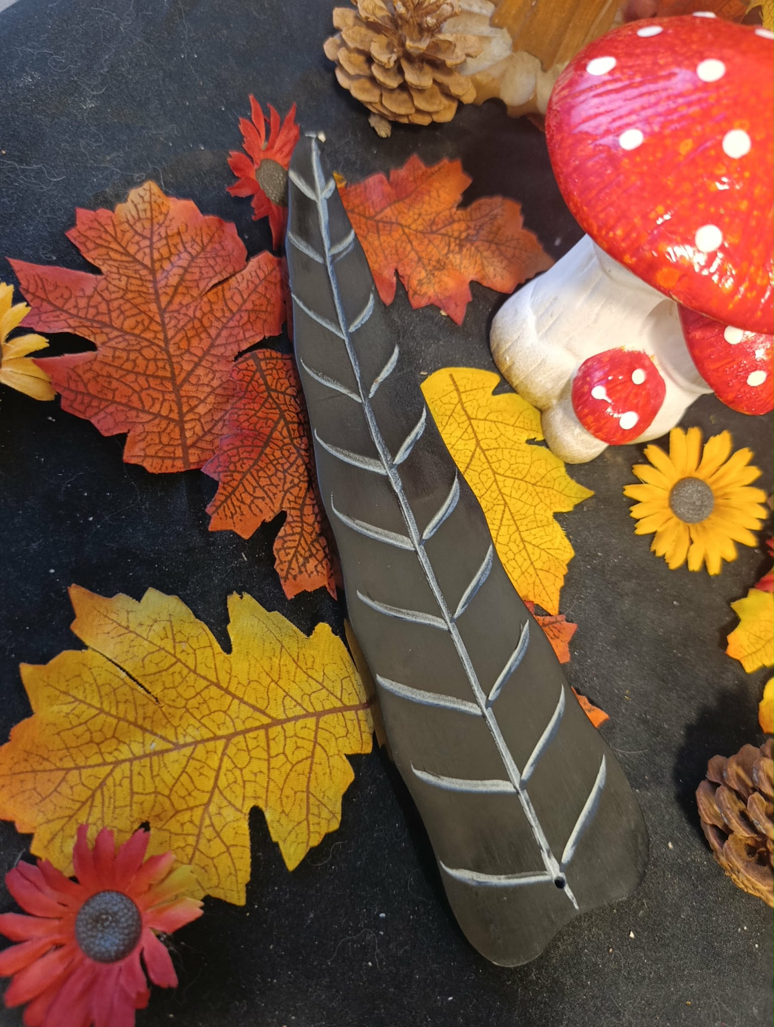 Ce magnifique porte-encens en pierre ollaire noire est sculpté en forme de feuille, offrant un rendu esthétique, élégant et naturel.