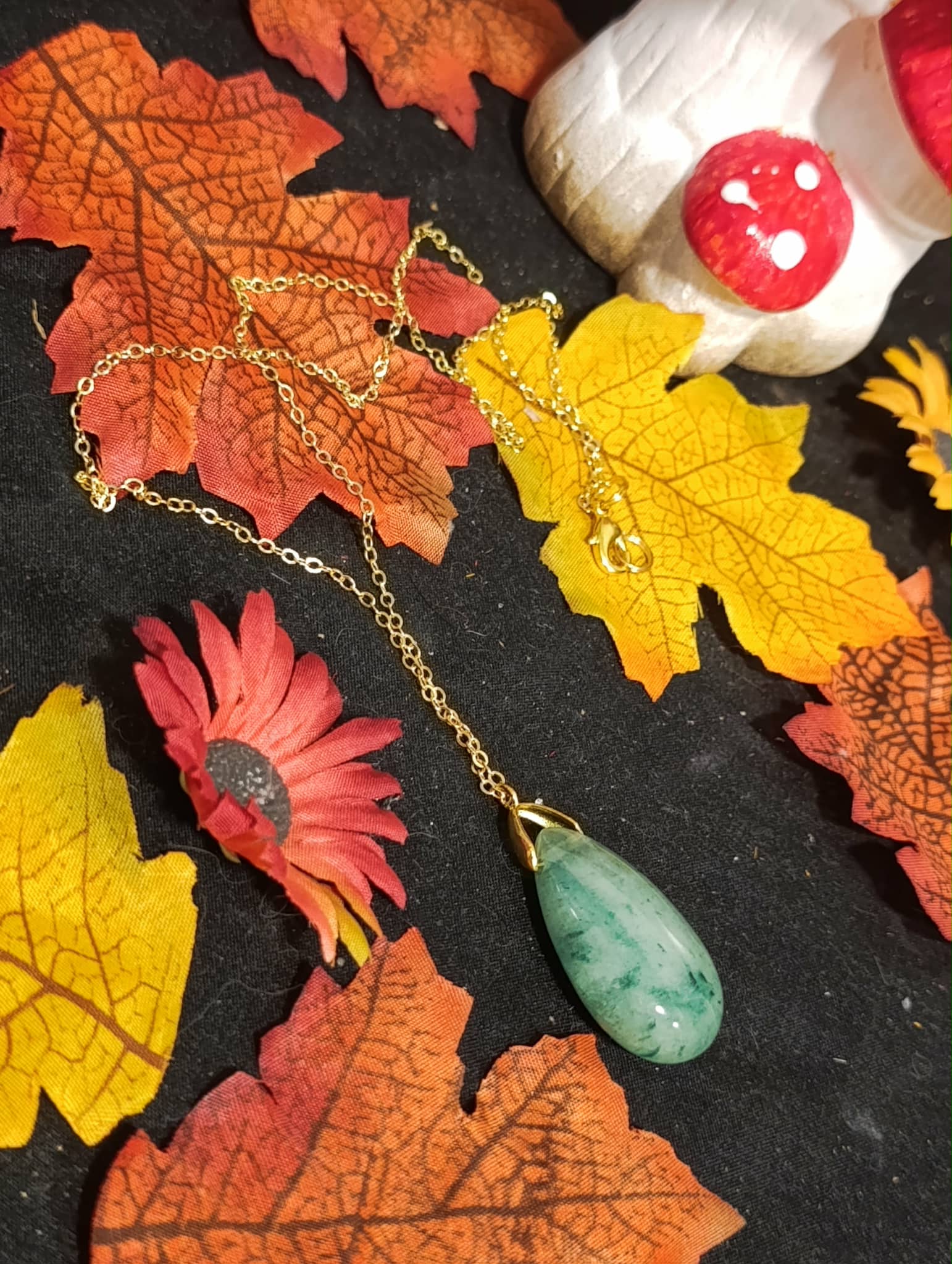 Apportez chance, prospérité et harmonie intérieure avec ce pendentif goutte en Aventurine Verte, pierre naturelle qualité A+, montée sur une chaîne en cuivre doré sans plomb ni nickel, hypoallergénique et élégante.