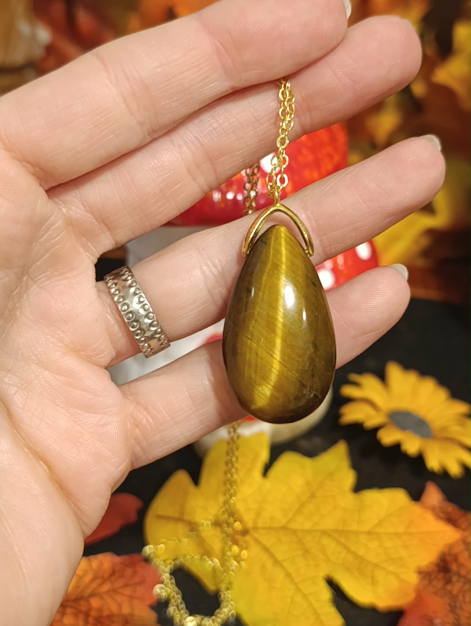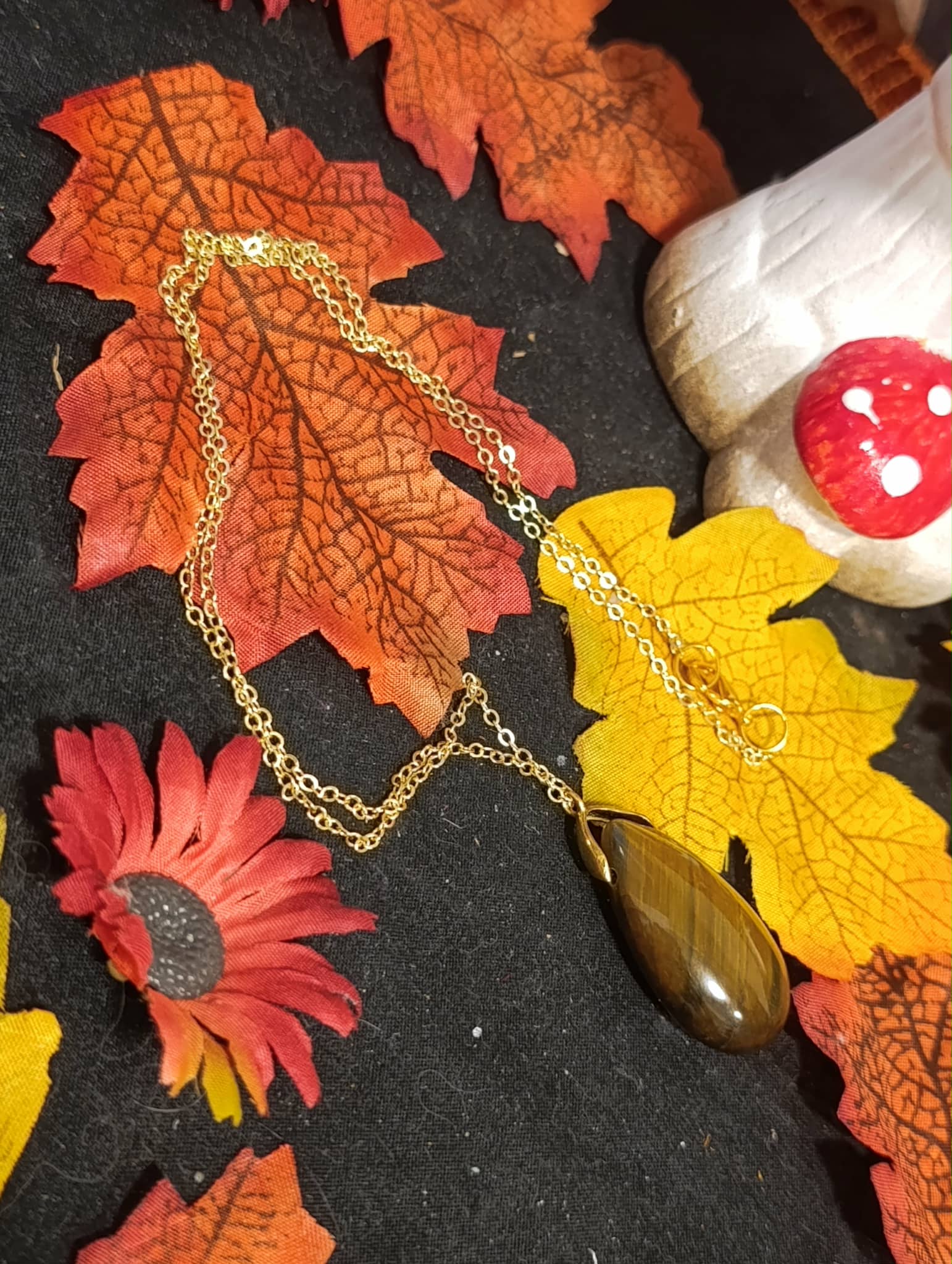 Portez un bijou qui allie protection, courage et vitalité avec ce pendentif goutte en Œil de Tigre, pierre naturelle qualité A+, montée sur une chaîne en cuivre doré sans plomb ni nickel, hypoallergénique et élégante.